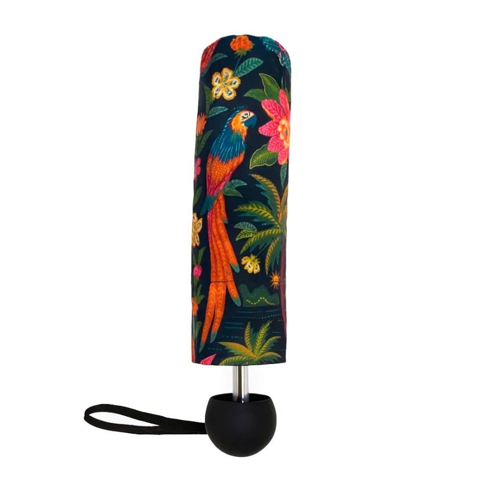 Com estampa vibrante e cheia de personalidade, o Guarda-Chuva Farm Chua Samba das Araras Preto/Colors é perfeito para transformar os dias chuvosos em momentos de estilo. Seu design une fundo preto elegante com detalhes coloridos inspirados na natureza, garantindo um visual alegre e marcante.