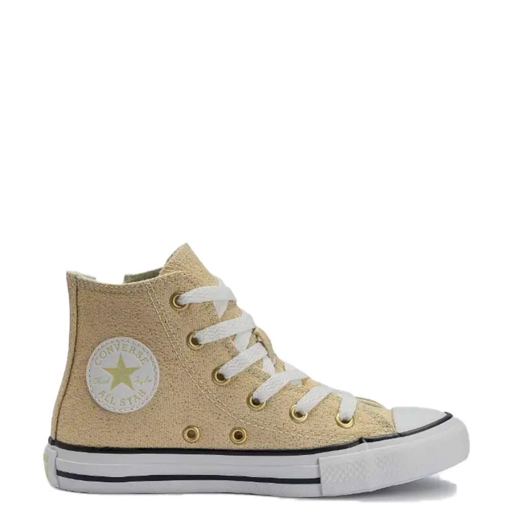 O clássico Chuck Taylor All Star nesta versão kids é confeccionado em tecido canvas de algodão tipo lona e vem nesta edição em cores sazonais. Possui costuras duplas, uma tira de tecido no calcanhar que proporciona maior suporte ao tênis e ilhoses na cor prateada, com dois ilhoses laterais para uma transpiração adequada aos pés. O logo Converse Chuck Taylor All Star é aplicado na parte interna dos canos e na Heeltab do calcanhar. Na parte externa dos canos é aplicado um zíper para vestir de forma mais prática. O solado vulcanizado garante a aderência adequada ao caminhar.