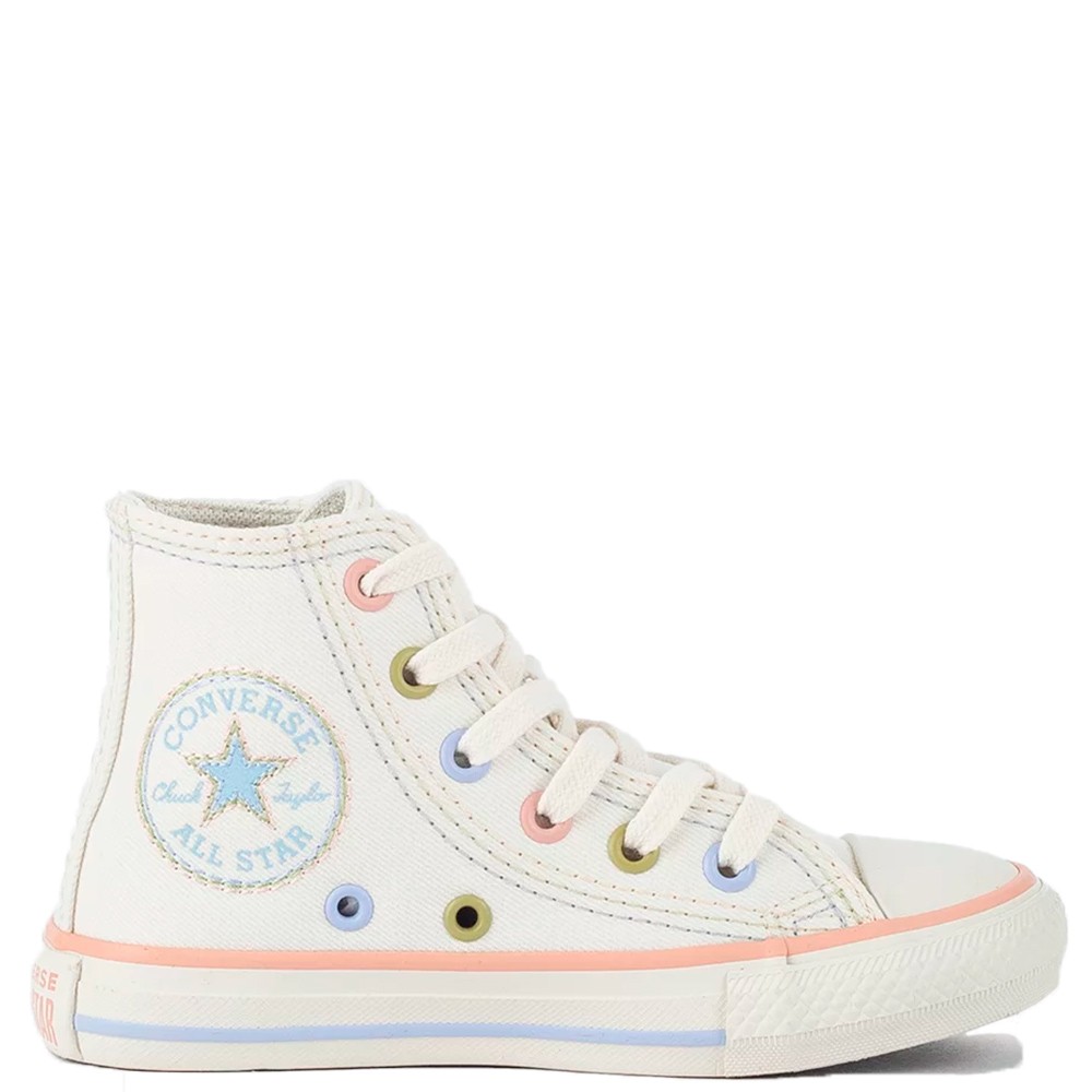 O clássico Chuck Taylor All Star na versão kids, nesta coleção Vintage Remastered, é confeccionado em lona de algodão, possui costuras duplas, ilhoses na cor prateada, uma tira de tecido no calcanhar que proporciona maior suporte ao tênis, forro interno acolchoado para maior conforto e dois ilhoses laterais para uma transpiração adequada aos pés.